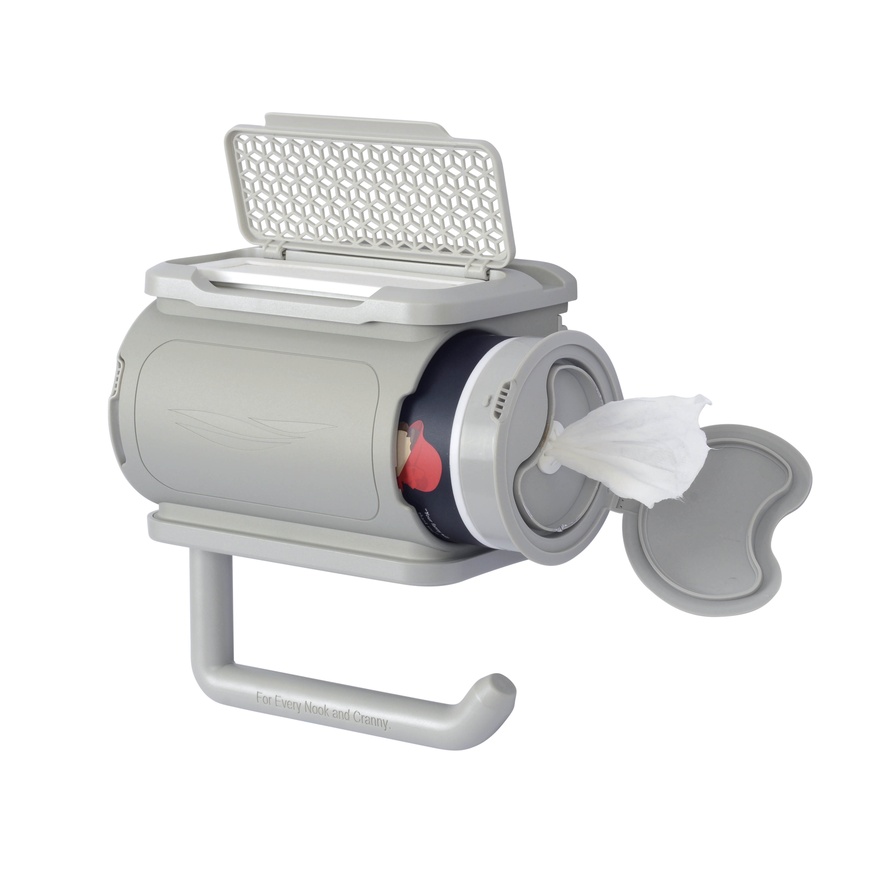 💨 All-In-One Convenience — Toilet paper, wipes, and fragrance in one sleek, easy-reach setup.